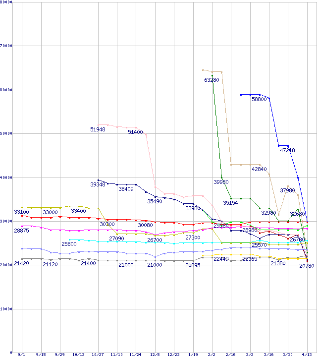| CPU主要製品(最安値2万円~3万円未満)の最安値推移 | | | (2006年9月1日~2007年4月13日) |