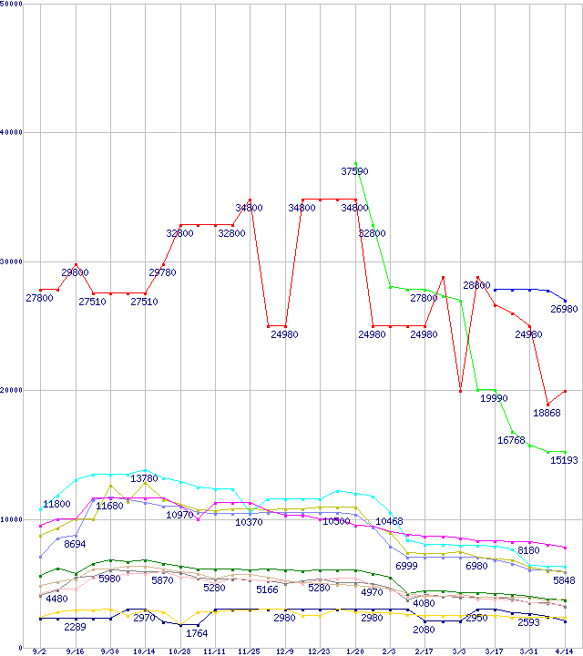 メモリ主要製品の最安値推移