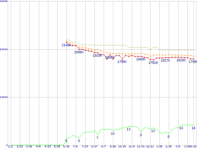 | WD740ADFD (74.3GB)の価格推移 | | | (2006年2月2日~2007年4月12日) |