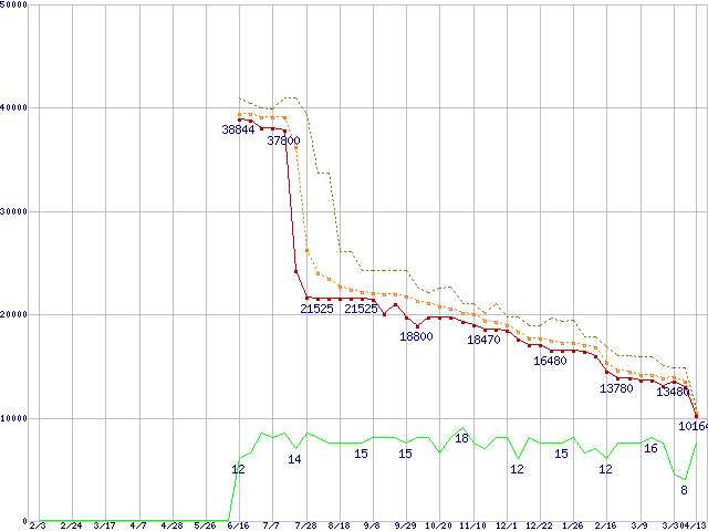 | Athlon 64 X2 3800+ (2.0GHz,L2 512KB×2,TDP65W)の価格推移 | | | (2006年2月3日~2007年4月13日) |