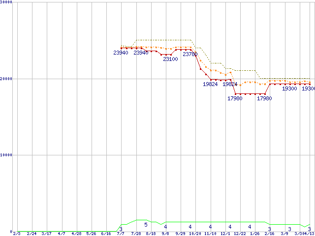 | Turion 64 X2 TL-50 (1.6GHz,256KB×2)の価格推移 | | | (2006年2月3日~2007年4月13日) |