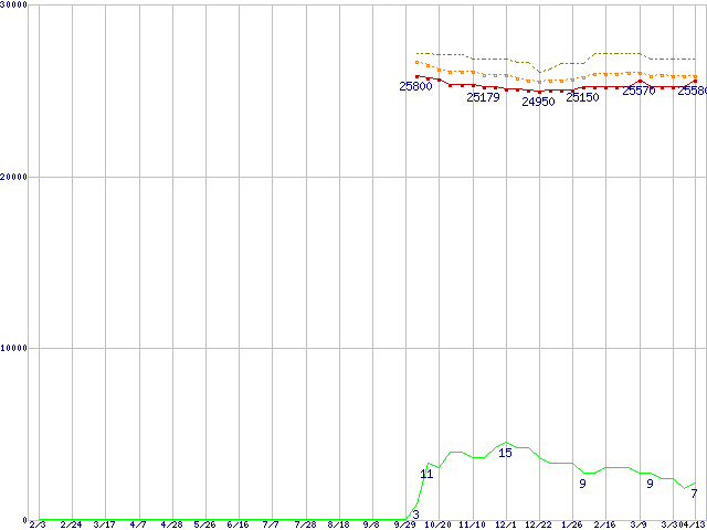 | Core 2 Duo T5500 (1.66GHz,L2 2MB)の価格推移 | | | (2006年2月3日~2007年4月13日) |
