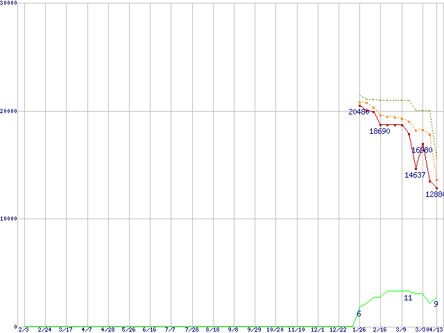 | Athlon 64 X2 4000+ (2.1GHz,L2 512KB×2,TDP65W)の価格推移 | | | (2006年2月3日~2007年4月13日) |