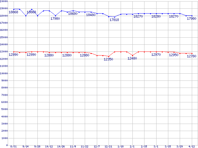 WD Raptor (10000rpm,SATA 1.5Gb/s,16MB,NCQ)の最安値推移