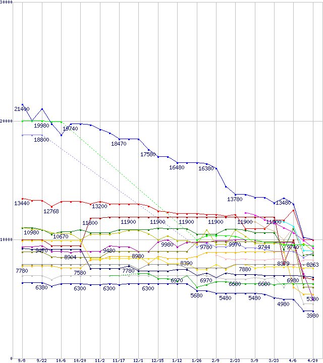 ※製品名をクリックすると個別のグラフを表示します ※点線部は販売店が確認できなかった、または調査データがないことを示します |