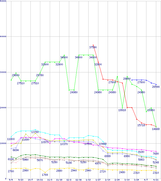 ※点線部は販売店が確認できなかった、または調査データがないことを示します