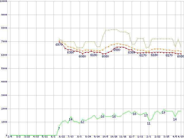 | HDS721616PLA380 (160GB,8MB)の価格推移 | | | (2006年2月9日~2007年4月19日) |