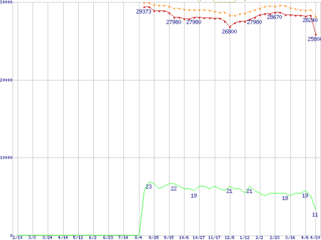 | Core 2 Duo E6400 (2.13GHz,L2 2MB)の価格推移 | | | (2006年2月10日~2007年4月20日) |