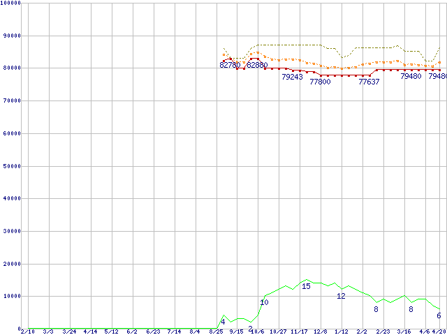 | Core 2 Duo T7600 (2.33GHz,L2 4MB)の価格推移 | | | (2006年2月10日~2007年4月20日) |