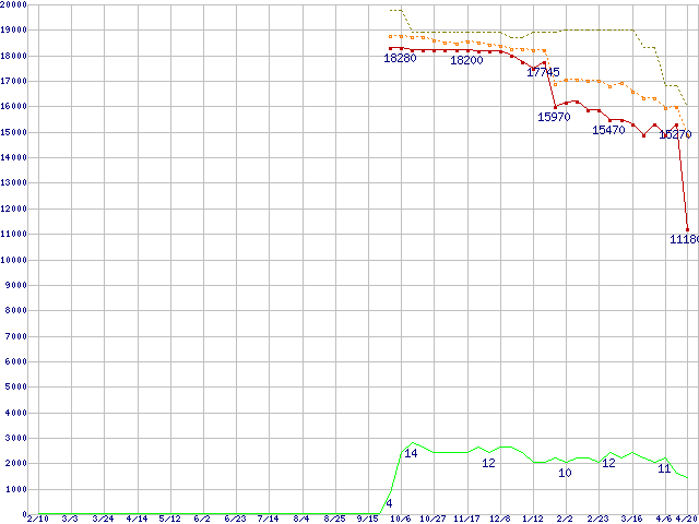 | Pentium D 925 (3.0GHz)の価格推移 | | | (2006年2月10日~2007年4月20日) |