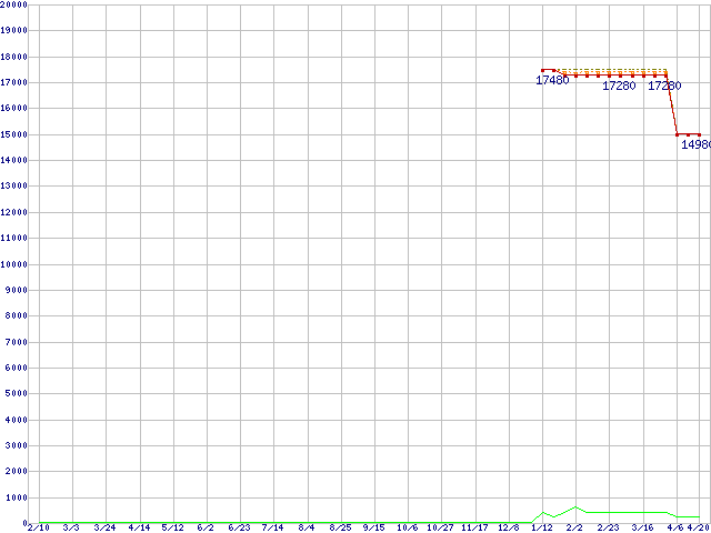 | Celeron M 520 (1.60GHz)の価格推移 | | | (2006年2月10日~2007年4月20日) |
