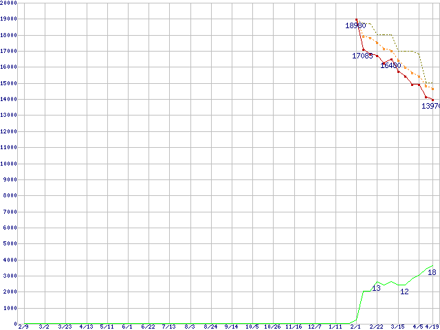 | WD5000AAKS (500GB)の価格推移 | | | (2006年2月9日~2007年4月19日) |
