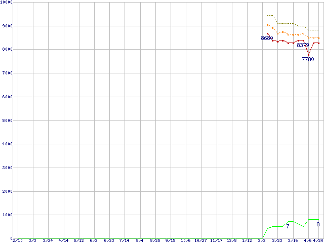 | Celeron D 360 (3.46GHz)の価格推移 | | | (2006年2月10日~2007年4月20日) |