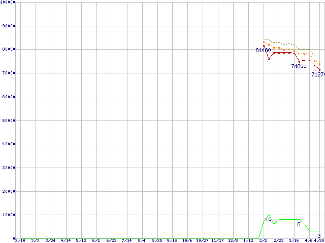 | Athlon 64 FX-70 (2.6GHz) ※2個セットの価格の価格推移 | | | (2006年2月10日~2007年4月20日) |