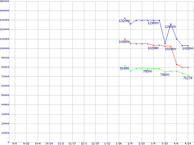 Socket F (FSB 1000MHz,Dual Core,L2 1MB×2)の最安値推移
