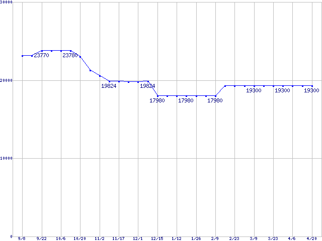 Socket A (FSB 266MHz,L2 256KB)の最安値推移