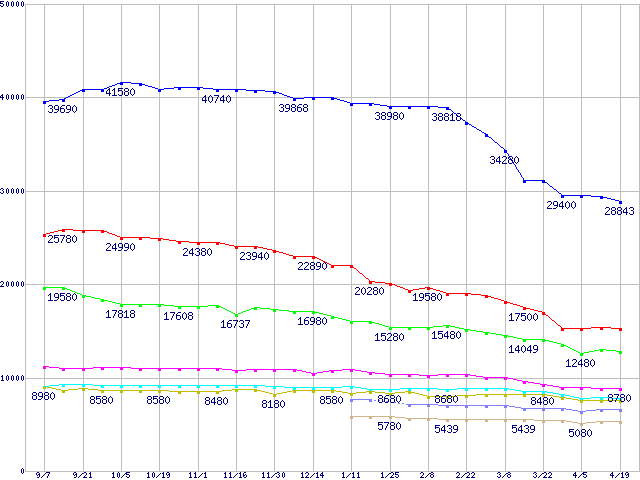 Deskstar 7K160 (7200rpm,Ultra ATA/133,8MB)の最安値推移