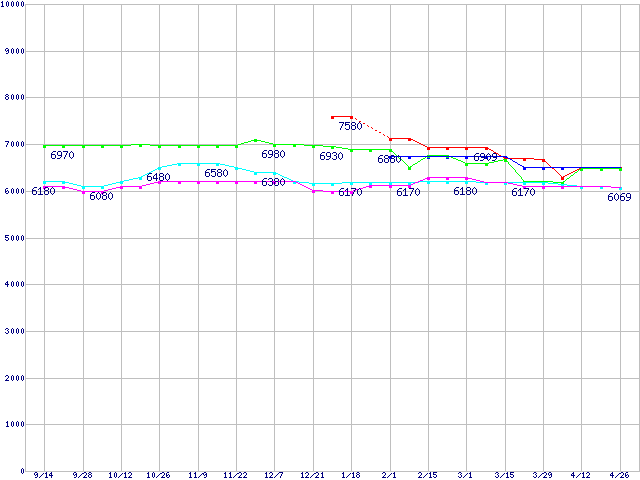 ※点線部は販売店が確認できなかった、または調査データがないことを示します