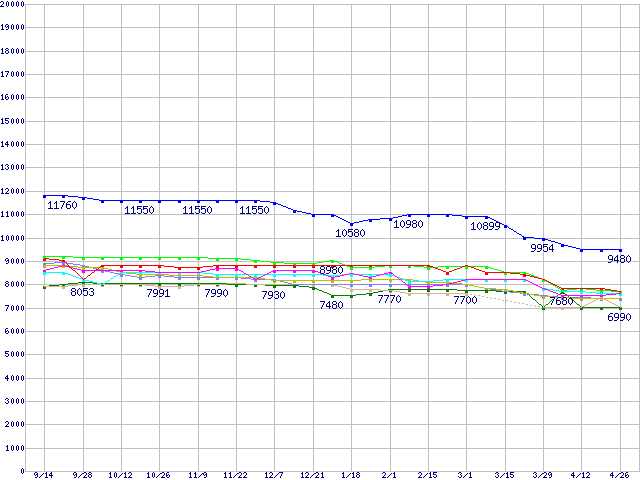 ※点線部は販売店が確認できなかった、または調査データがないことを示します