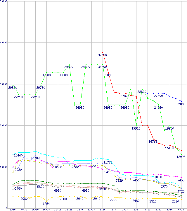 メモリ主要製品の最安値推移