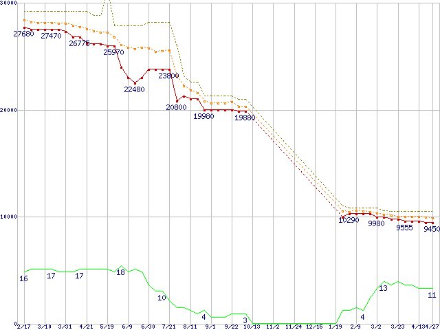 | Pentium 4 641 (3.20GHz)の価格推移 | | | (2006年2月17日~2007年4月27日) |
