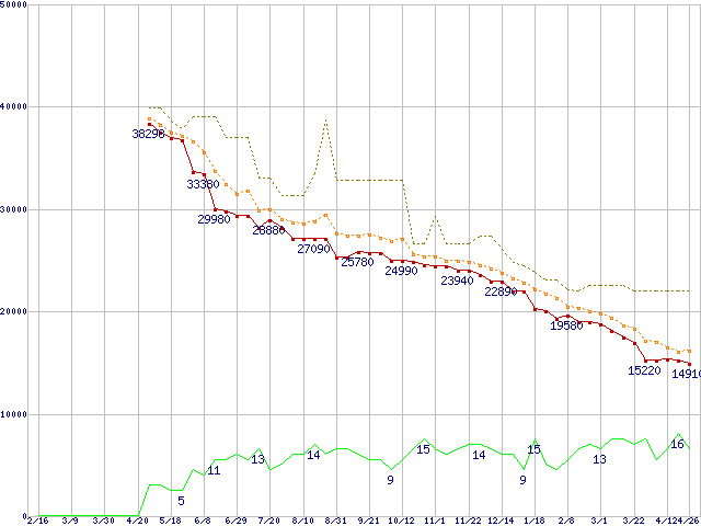 | ST3500630AS (500GB,16MB)の価格推移 | | | (2006年2月16日~2007年4月26日) |