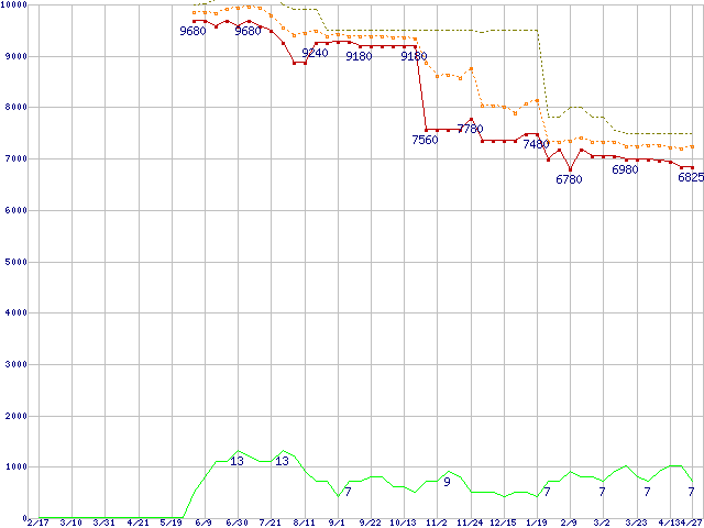 | Celeron D 352 (3.20GHz)の価格推移 | | | (2006年2月17日~2007年4月27日) |