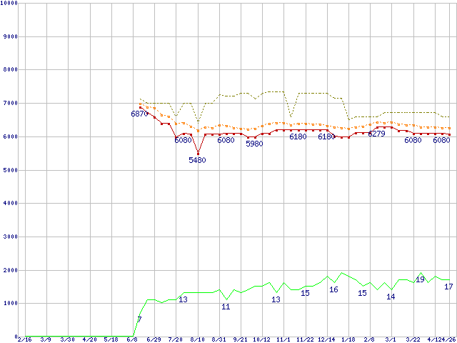 | HDS721616PLAT80 (160GB)の価格推移 | | | (2006年2月16日~2007年4月26日) |