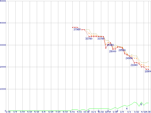 | ST3500630NS (500GB,16MB)の価格推移 | | | (2006年2月16日~2007年4月26日) |