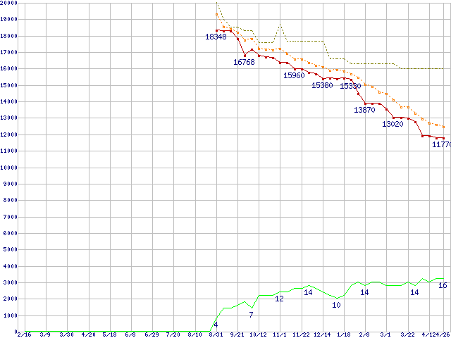 | HDT725040VLAT80 (400GB,8MB)の価格推移 | | | (2006年2月16日~2007年4月26日) |