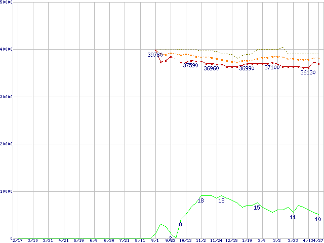 | Core 2 Duo T7200 (2.00GHz,L2 4MB)の価格推移 | | | (2006年2月17日~2007年4月27日) |