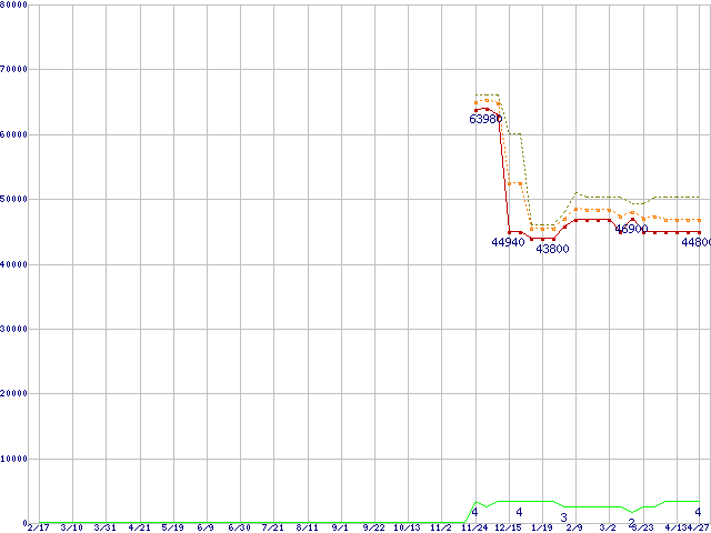 | Xeon E5310(1.60GHz)の価格推移 | | | (2006年2月17日~2007年4月27日) |