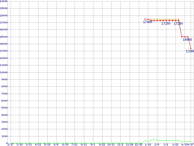 | Celeron M 520 (1.60GHz)の価格推移 | | | (2006年2月17日~2007年4月27日) |