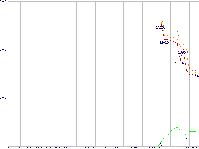 | Athlon 64 X2 4400+ (2.3GHz,L2 512KB×2,TDP65W)の価格推移 | | | (2006年2月17日~2007年4月27日) |
