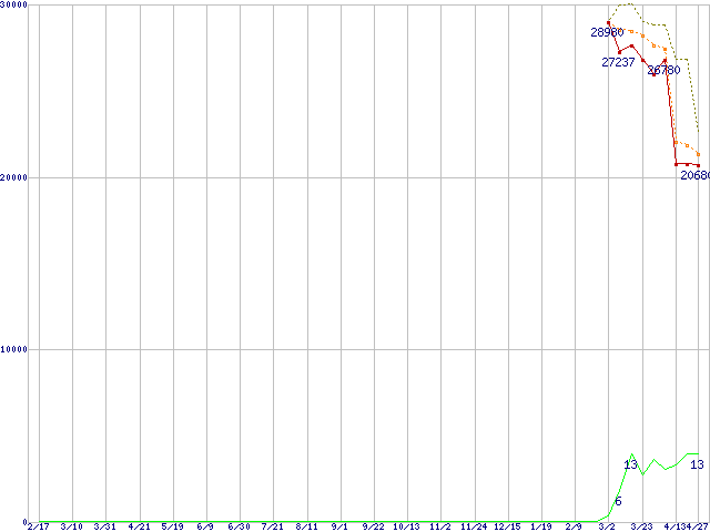 | Athlon 64 X2 5000+ (2.6GHz,L2 512KB×2,TDP65W)の価格推移 | | | (2006年2月17日~2007年4月27日) |
