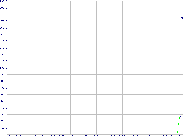 | Core 2 Duo E4400 (2GHz,L2 2MB)の価格推移 | | | (2006年2月17日~2007年4月27日) |