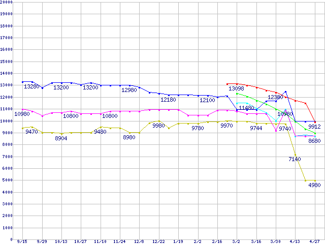 Socket 939 (FSB 1000MHz,Dual Core)の最安値推移
