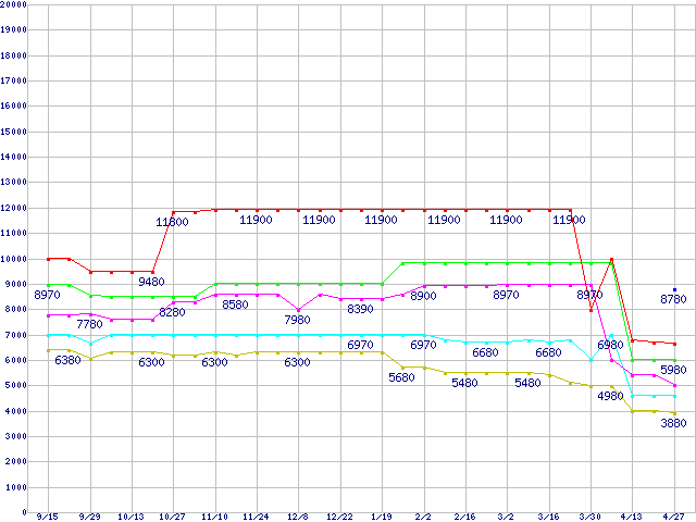 LGA775 (FSB 800MHz,L2 2MB,Hyper-Threading,EM64T対応)の最安値推移