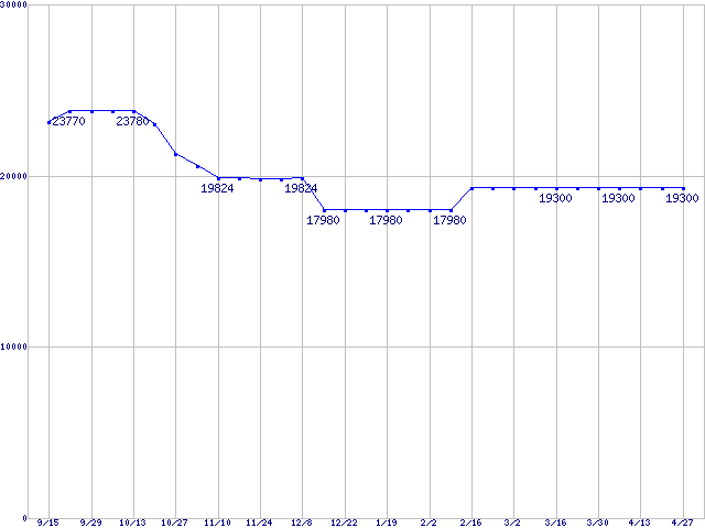 Socket F (FSB 1000MHz,Dual Core,L2 1MB×2)の最安値推移
