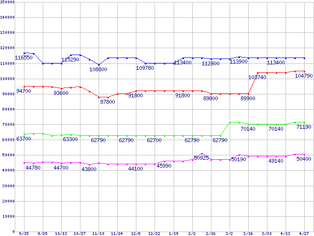 LGA771(FSB 1333MHz,Dual Core,L2 4MB)の最安値推移