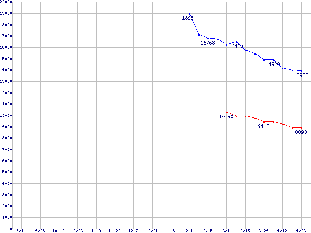 WD Raptor (10000rpm,SATA 1.5Gb/s,16MB,NCQ)の最安値推移
