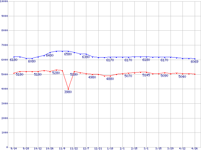 Deskstar 7K160 (7200rpm,SATA 3Gb/s)の最安値推移