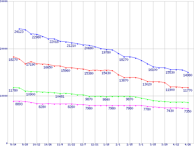 Deskstar 7K160 (7200rpm,Ultra ATA/133,8MB)の最安値推移