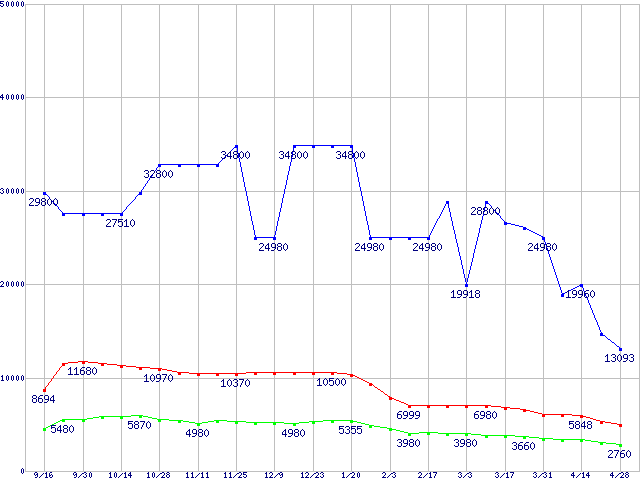 メモリ主要製品の最安値推移
