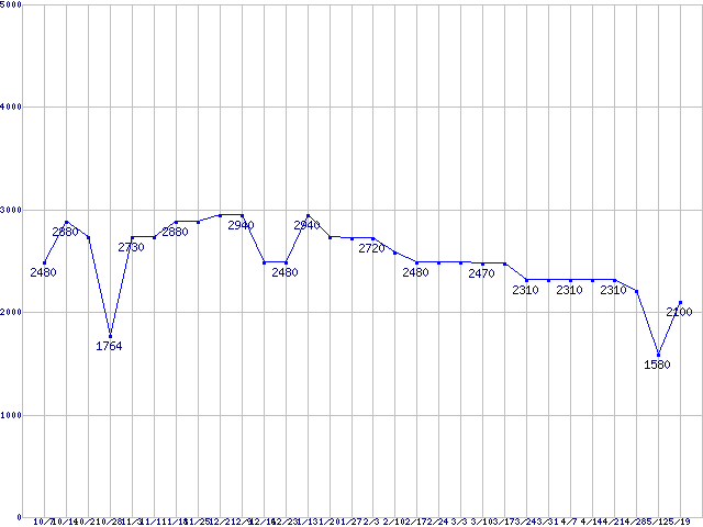 | 256MBモジュールの最安値推移 | | | (2006年10月7日~2007年5月19日) |
