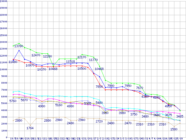 メモリ主要製品(最安値5千円未満)の最安値推移