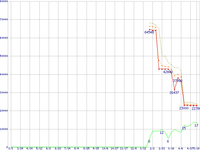 | Athlon 64 X2 5600+ (2.8GHz,L2 1MB×2)の価格推移 | | | (2006年3月3日~2007年5月18日) |