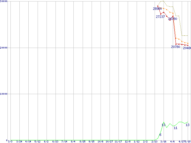 | Athlon 64 X2 5000+ (2.6GHz,L2 512KB×2,TDP65W)の価格推移 | | | (2006年3月3日~2007年5月18日) |