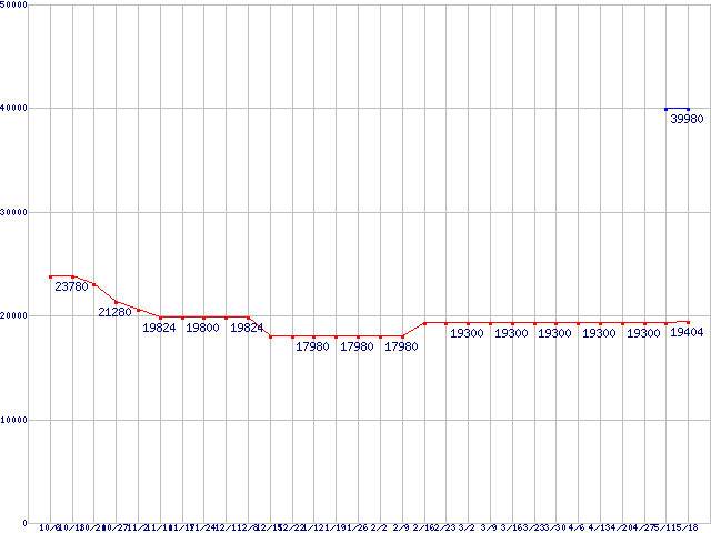Socket F (FSB 1000MHz,Dual Core,L2 1MB×2)の最安値推移