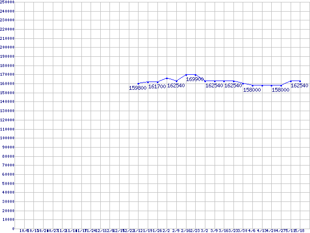 | LGA771(FSB 1333MHz,Quad Core,L2 4MB×2,TDP 120W)の最安値推移 | | | (2006年10月6日~2007年5月18日) |